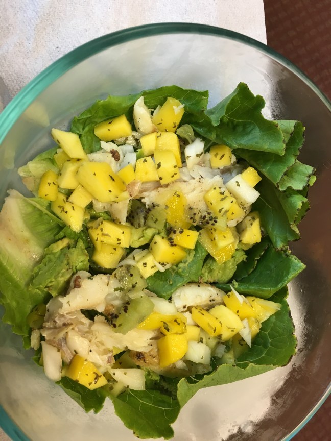 Directions: Mix a serving of fruit (or a little less, if you’re like me and want to stretch out the fruit) with 2 TB of shredded coconut and about a half serving of coconut water (not sure how much milk). Let it sit for 10 minutes or so to rehydrate. And then eat and enjoy! I usually eat this on Sunday and I eat breakfast later than usual, anticipating that this light breakfast won’t hold me for 4 hours. More like 3.5.