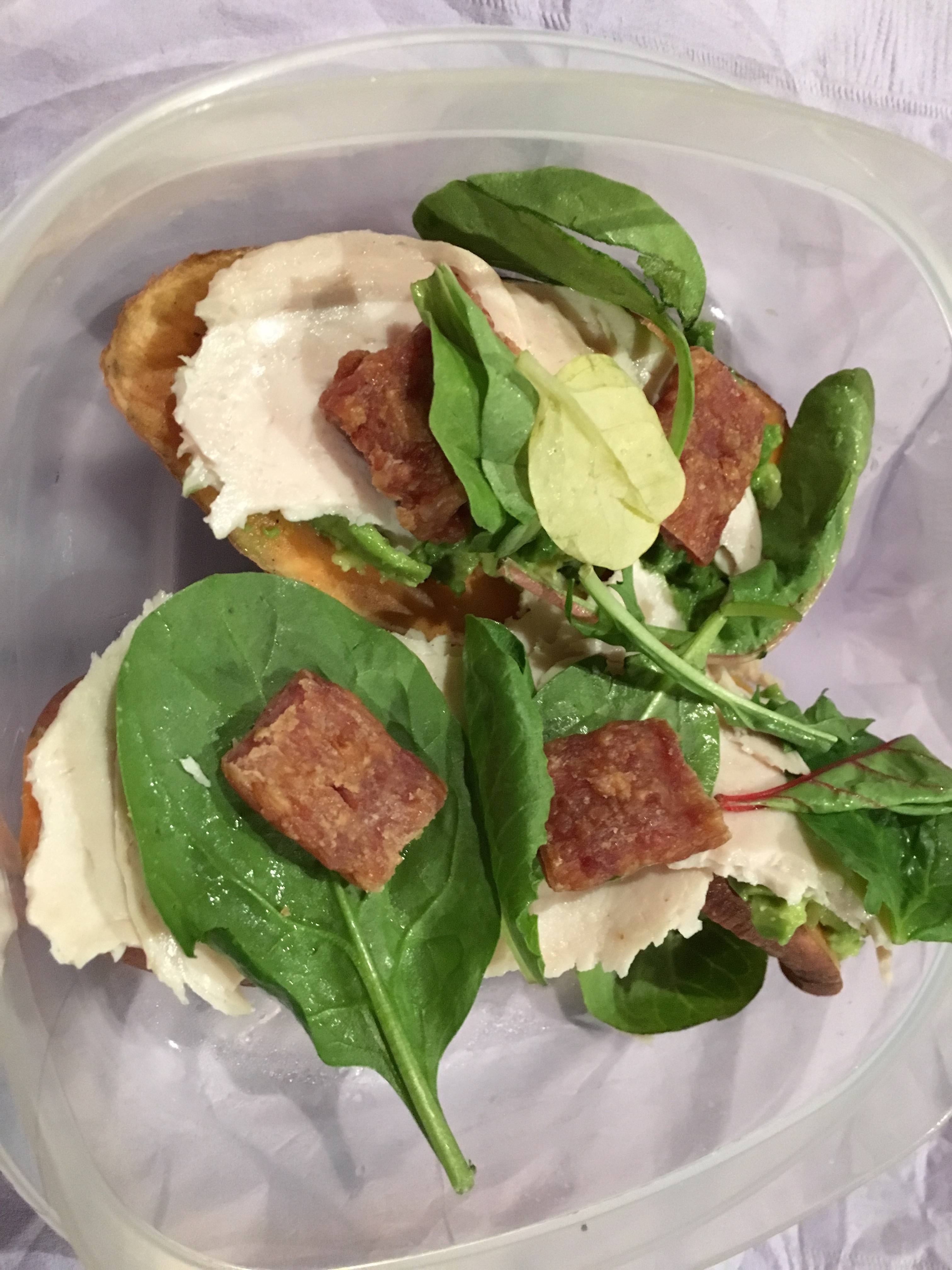 I got fancy beef and made very fancy (small) burgers my first week on the diet to help me get excited about breakfast. Some days I would top them with avocado, and I sliced up sweet potato slices to use as buns. Sauerkraut and veggies on the side of course. Burgers for breakfast seem indulgent and they’re delicious! For sweet potato buns, there are tons of recipes out there. I tend to just use a skillet on medium and cook them for 8-10 minutes per side (you want them to get roasted but not super soft) but you can bake them too, like this recipe suggests.